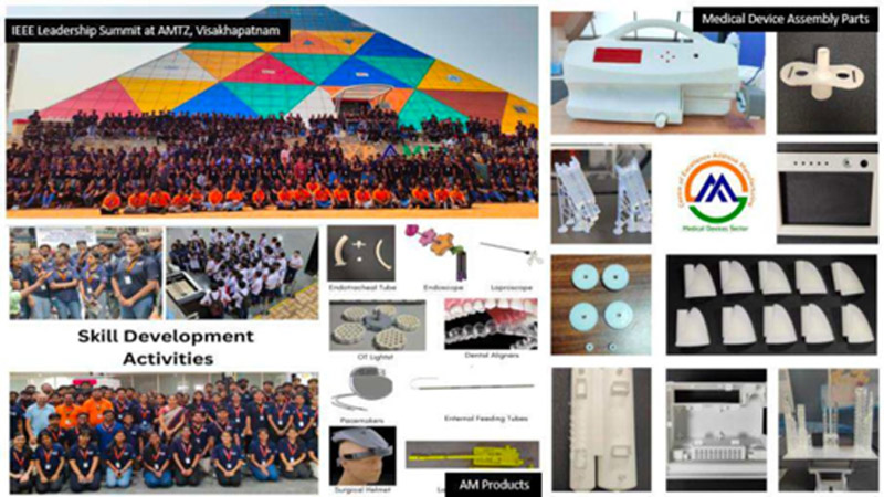 Additive Manufacturing (AM) is disruptive set of technologies which are bringing fundamental change in how manufacturing is carried out in many sectors due to its ability for mass customization. AM is enabler for digital manufacturing which has capability in producing products directly from design data by adding layers of material to obtain the final shape with minimal waste, supporting Industry 4.0. Ministry of Electronics and Information Technology (MeitY) has initiated a Centre of Excellence on Additive Manufacturing at Andhra Pradesh MedTech Zone, Vishakapatnam, Andhra Pradesh which will support Medical Device Sector. The vision of the centre is to make COE at AMTZ a hub (common facility for local AM industry which will offset disabilities for competing with global peers) for medical device innovation in India by nurturing various medical device start-ups through Additive Manufacturing (AM) technology. Through this centre sustainable long-term ecosystem will be provided to start-ups and industries which will enable medical device innovation in India; build skill-sets in the AM industry, in particular AM in the medical industry to achieve competitive advantages in the global market; promote creation of Indian IPR & facilitate IPR filing activity and offer industry, academia, global linkages to provide market access to the incubated products. The CoE has achieved several milestones within one year of its establishment: both in skill development and technology development. Over 400 manpower were trained in 3D printing, Medical Device Design, Prototyping and Testing in CoE AM - MDS. CoE is successful in establishing production of materials and products which earlier were under import dependency. One of the key product is UHMWPE, a novel orthoplastic engineered for its weight-bearing properties. This has been the major liner component for orthopaedic implants in hip and knee arthroplasty. The CoE also created capacities to deliver the highest quality small metal components with outstanding levels of chemistry control, strength, and density across a wide range of alloys.